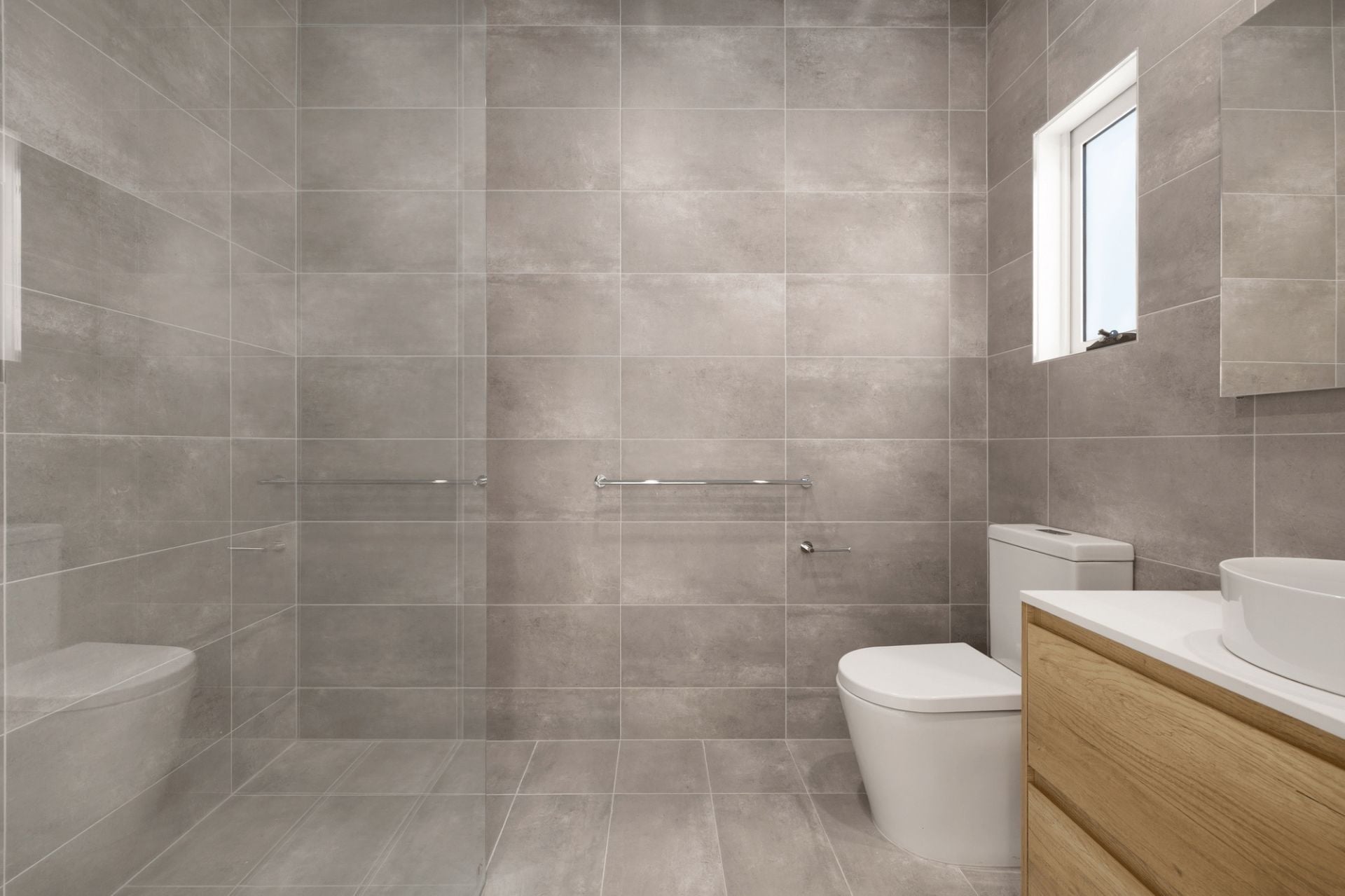 The bathrooms are finished to a high standard, featuring stone benchtops, floor-to-ceiling tiling and quality tapware, including a family-friendly bath ideal for young children.