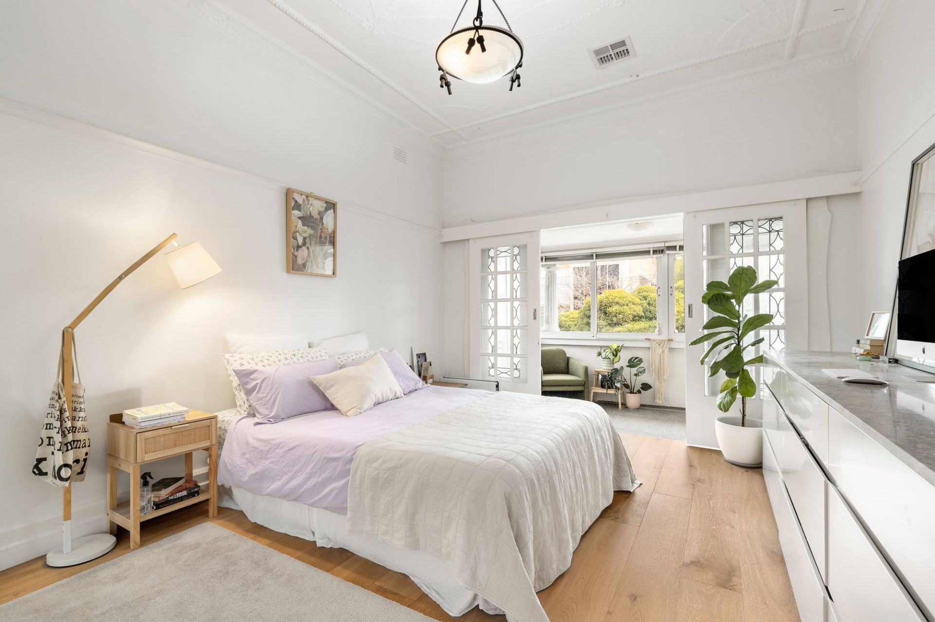 Two spacious bedrooms provide excellent accommodation. The superb front main bedroom features double glazing, custom joinery and an adjoining study or sunroom that captures the warmth of the afternoon light and sunset later in the day, creating a comfortable space for working from home or relaxing. The second bedroom is notably generous in size and offers exceptional flexibility, with two windows and two existing entry points allowing the room to potentially be divided into two spaces if desired. This provides the option of creating a separate child's bedroom or alternatively configuring the space to form a dining room adjoining the living area.