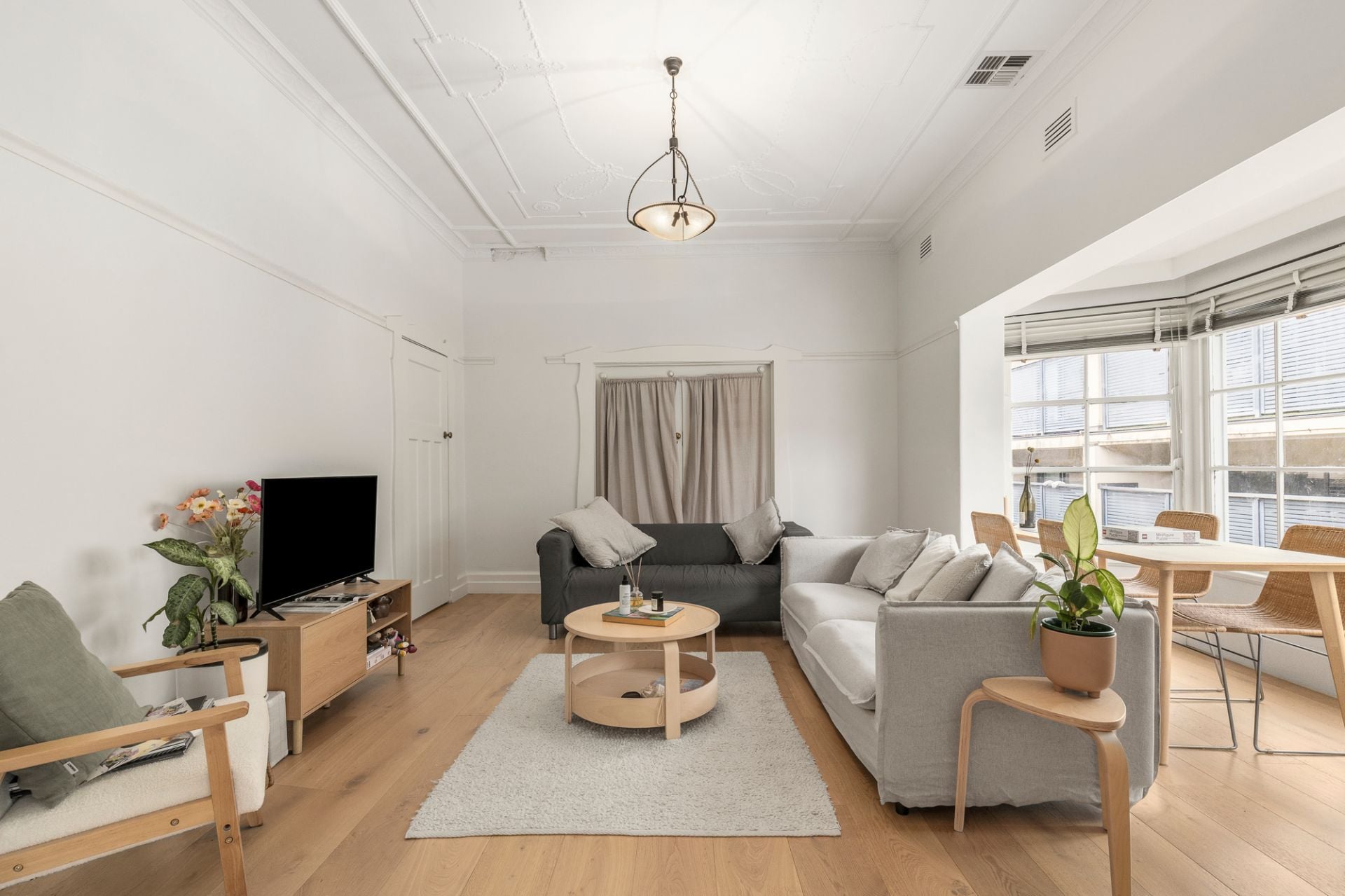 This tastefully updated 1930s first-floor apartment impresses with rare scale, abundant natural light and quality finishes. A generous bay-window living and dining room forms the centrepiece of the home, offering a warm and inviting space with the proportions and character typical of apartments from this era.