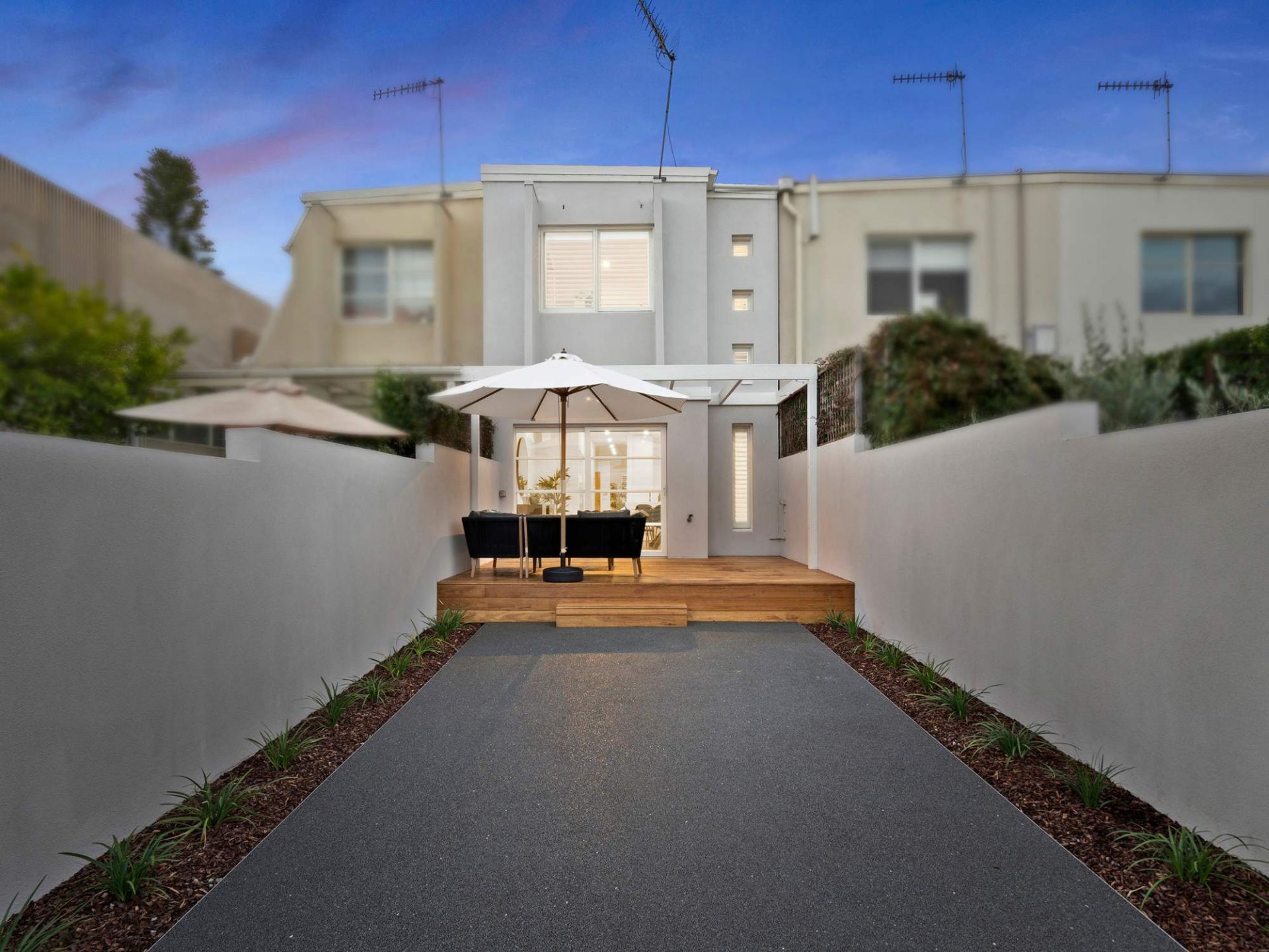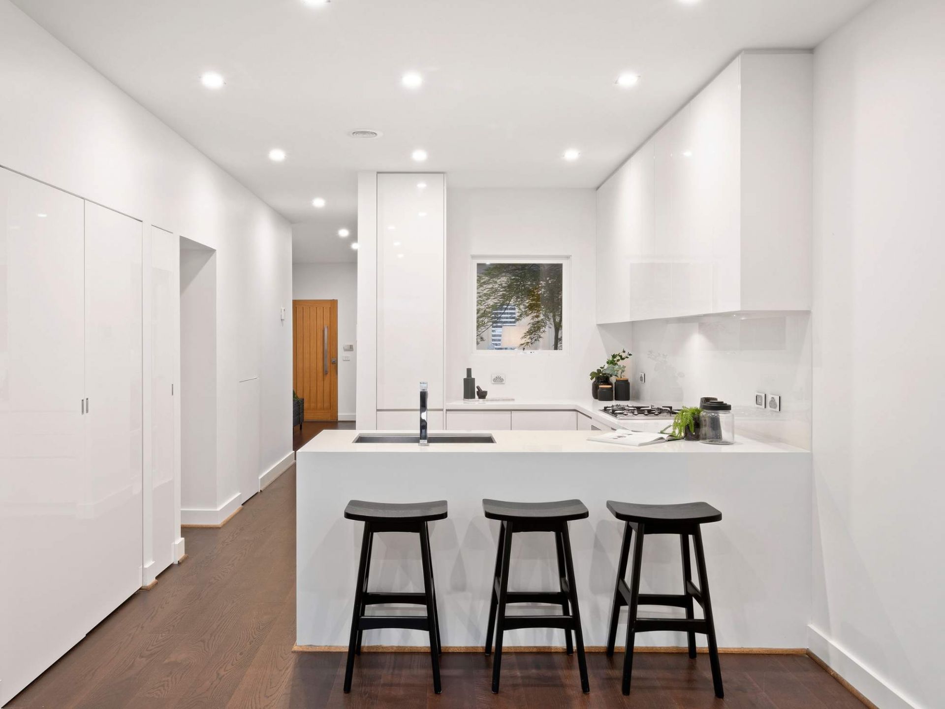 Immaculately presented with a crisp interior, featuring ground floor dual living accentuated by a naturally lit, glass panelled, courtyard alcove, a stone bench kitchen with a Smeg oven, gas cooktop and a Bosch dishwasher along with a well-placed euro laundry. Upstairs find two bedrooms with built-in robes, a designated guest bedroom or office space, a separate water closet and 2 fully tiled bathrooms including a double vanity, master ensuite. Note: no body corporate.