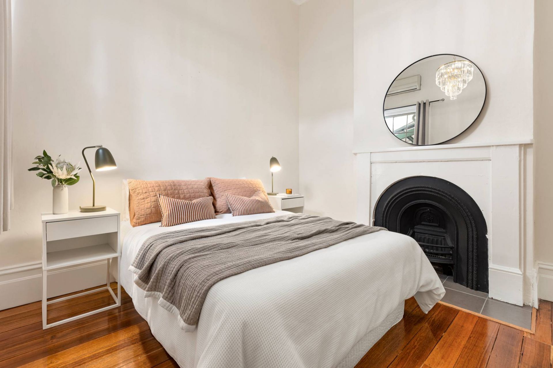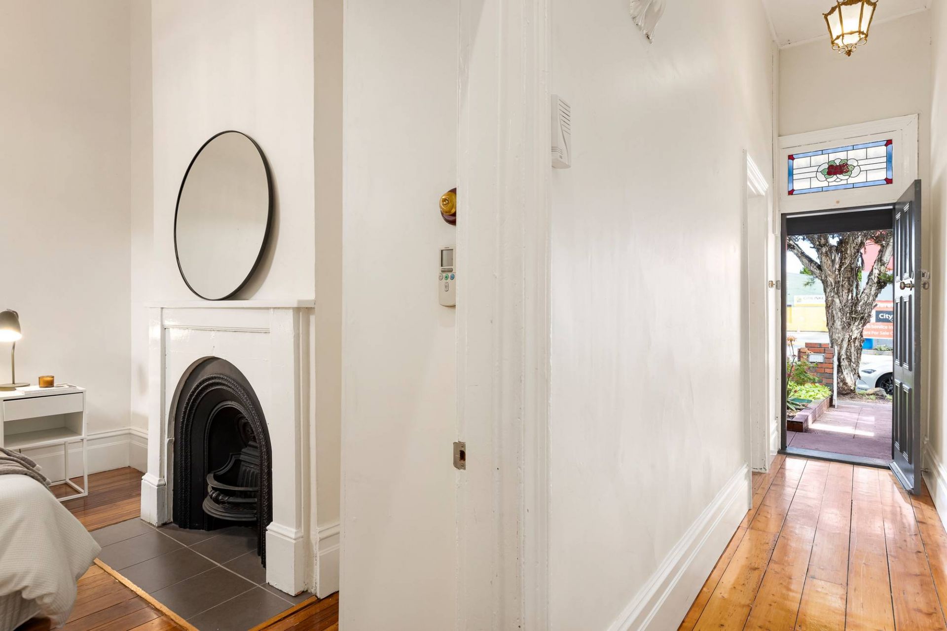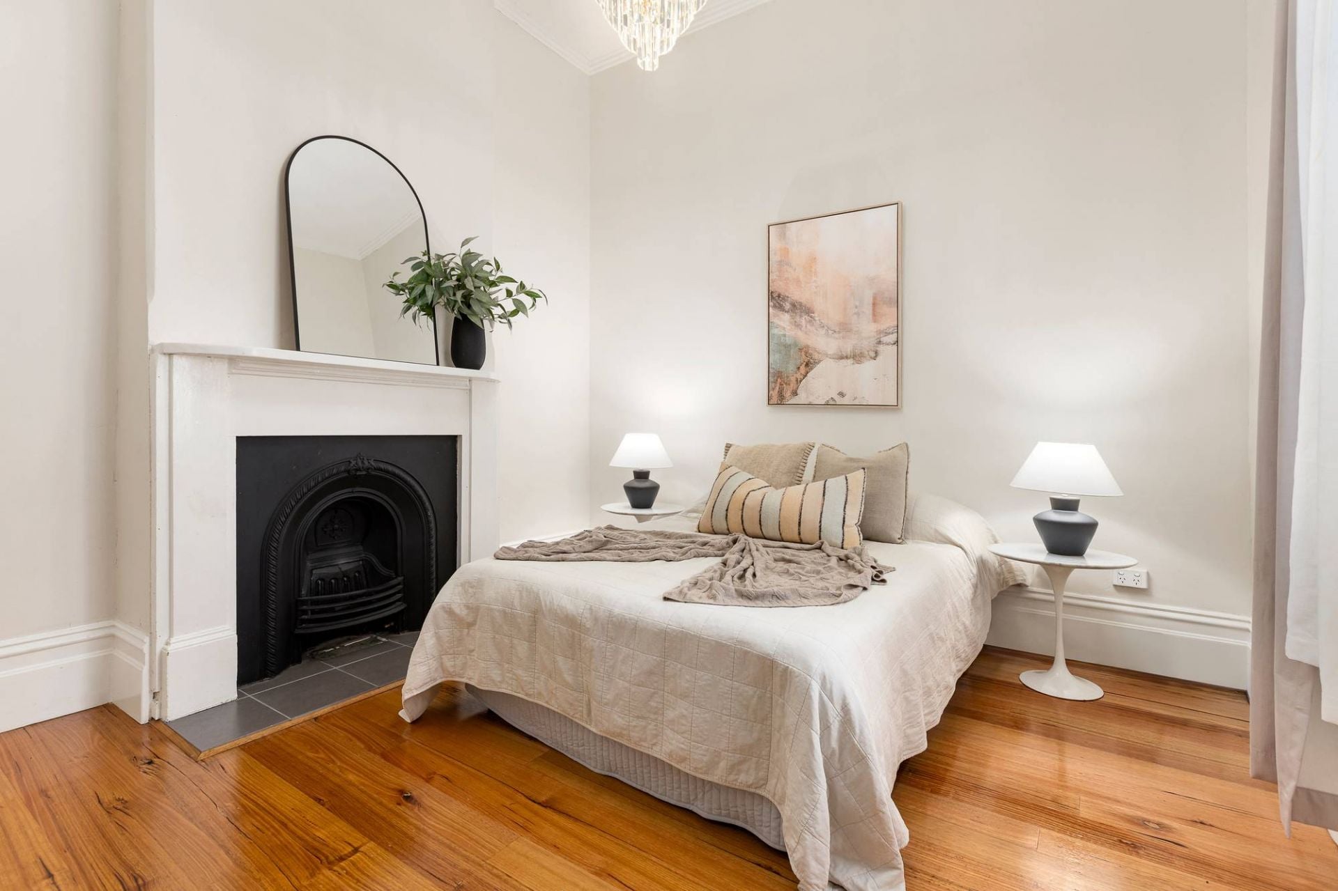 Beyond its classic facade, the home opens to two well-proportioned bedrooms, each featuring ornate open fireplaces that bring warmth and character. A beautiful leadlight window above the entry and polished timber floorboards further elevate the period charm. A central living room forms the relaxed heart of the home, while the modern galley-style kitchen and updated bathroom with bath provide everyday comfort and practicality.